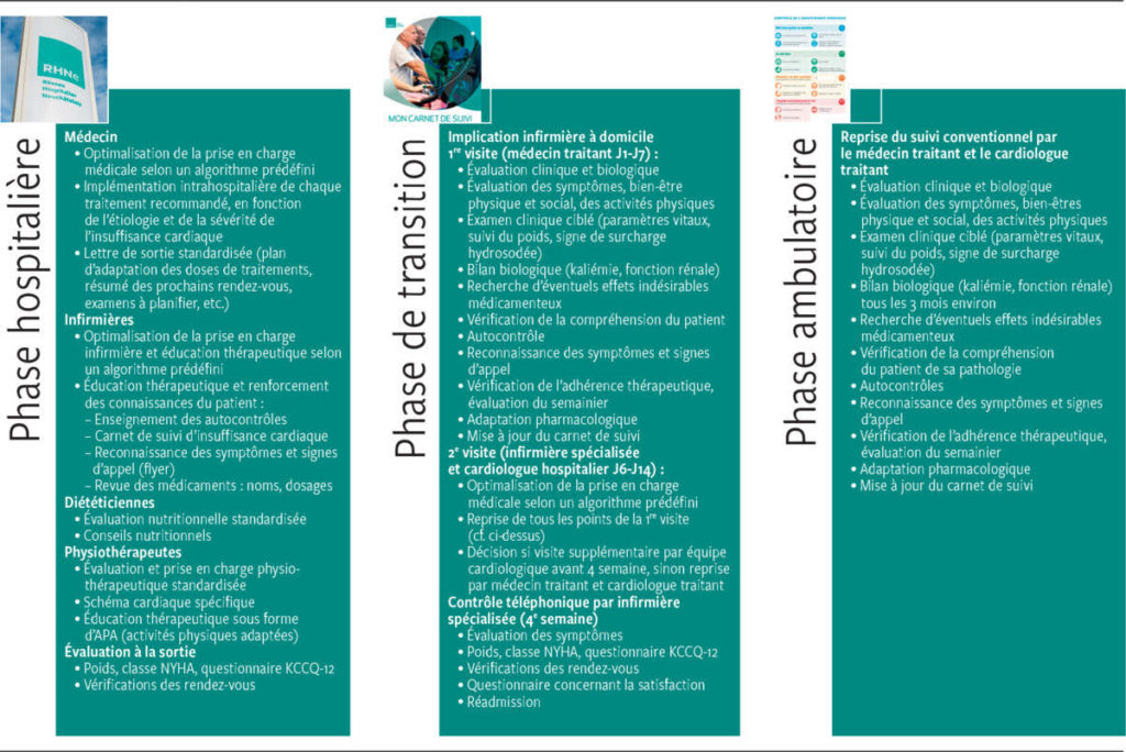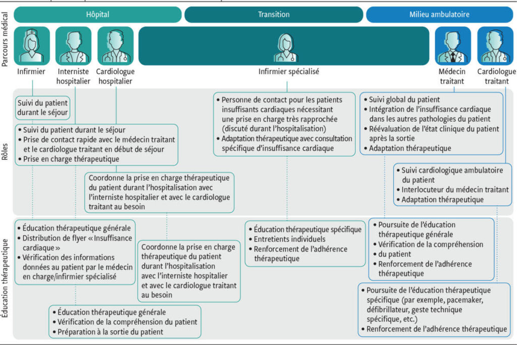 Début 2022, une filière spécifique de prise en charge après une hospitalisation pour insuffisance cardiaque a été mise en place dans le canton de Neuchâtel. Le but était de renforcer la collaboration interprofessionnelle entre tous les partenaires médicaux et paramédicaux impliqués dans la prise en charge des patients insuffisants cardiaques durant l’hospitalisation, puis durant la phase ambulatoire vulnérable des quatre semaines qui suivent l’hospitalisation. Plusieurs filières du même type ont été progressivement développées dans plusieurs cantons suisses ces dernières années.