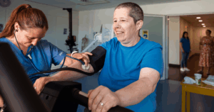 On retrouve ces proportions parmi les participants au programme de réadaptation cardiovasculaire ambulatoire du RHNe. Ce programme mixte favorise une reprise progressive de l’activité physique avec des physiothérapeutes. Les patients sont monitorés et bénéficient d’un suivi individualisé, adapté à leur condition.